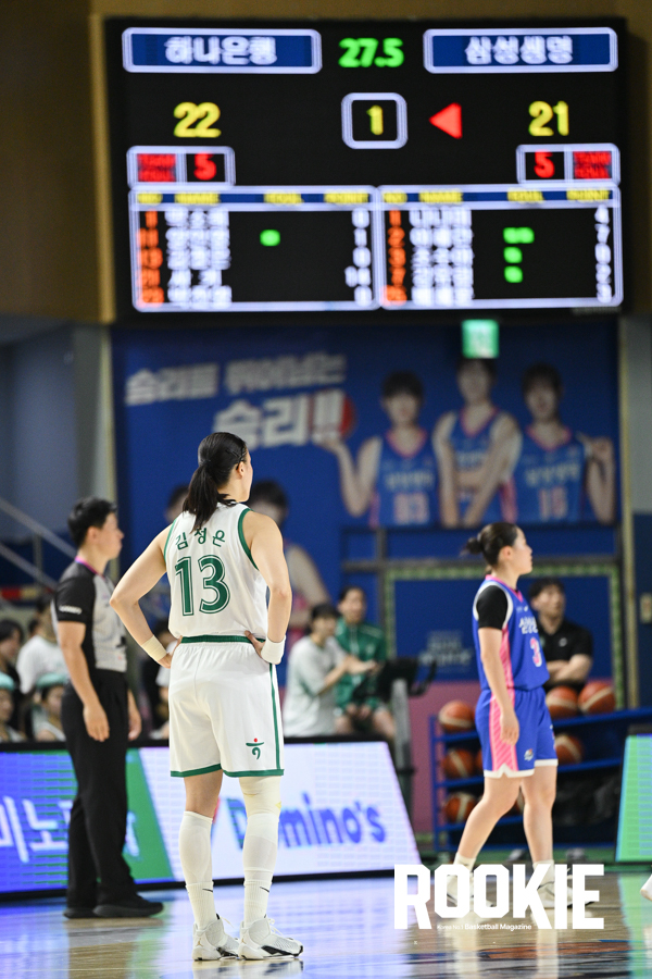 24일 용인 실내체육관에서 ‘BNK 금융 2025~2026 여자프로농구’ 용인 삼성생명과 부천 하나은행의 경기가 열렸다. 하나은행 김정은이 올시즌 처음으로 1쿼터부터 코트에 모습을 보였다.