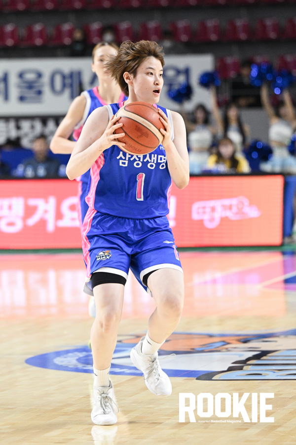 24일 용인 실내체육관에서 ‘BNK 금융 2025~2026 여자프로농구’ 용인 삼성생명과 부천 하나은행의 경기가 열렸다. 삼성생명 나나미가 속공을 주도하고 있다.
