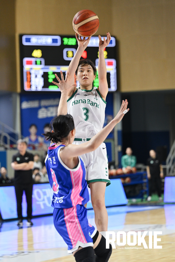 24일 용인 실내체육관에서 ‘BNK 금융 2025~2026 여자프로농구’ 용인 삼성생명과 부천 하나은행의 경기가 열렸다. 하나은행 정현이 슛을 시도하고 있다.