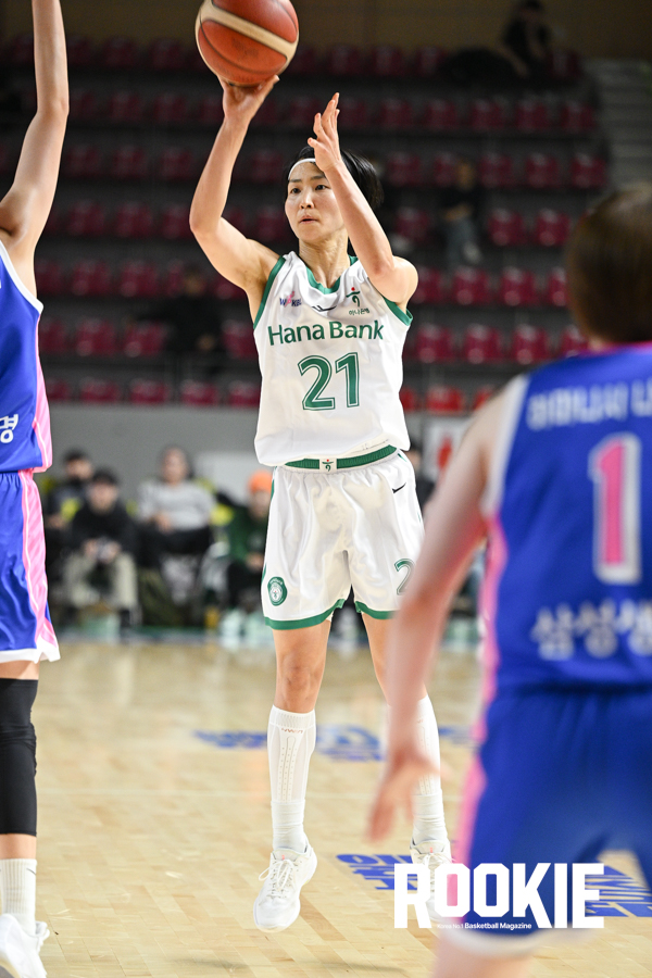 24일 용인 실내체육관에서 ‘BNK 금융 2025~2026 여자프로농구’ 용인 삼성생명과 부천 하나은행의 경기가 열렸다. 하나은행 사키가 3점슛을 시도하고 있다.