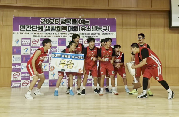 챔프중2 팀은 지난 15일과 16일 이틀간 서울 동대구문구 체육관에서 개최된 2025 행복을 여는 민간단체 생활체육 농구대회에 출전해 값진 우승에 성공했다. 곽호윤(SG), 김윤호(SF), 박지후(SG), 서현준(PF/주장), 송현재(PF), 이강한(PG), 이빈희(PF), 이서진(PG), 최건우(SF), 한지민(F)이 대회에 나선 챔프중2 팀은 이번 우승으로 자신들이 왜 3년여간 한 팀에서 활약하고 있는지 입증했다.