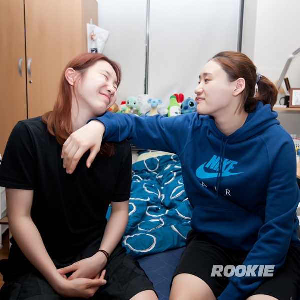 강이슬(이하 '이슬') : 사실 첫 시즌엔 지영이랑 정말 안 친했어요. 청운동 숙소는 건물이 두 개였는데 다른 건물을 썼거든요. A동이 선수단 숙소였는데 선수가 많아서 방이 모자라니까 신입생이었던 지영이랑 예진이만 B동을 썼죠.