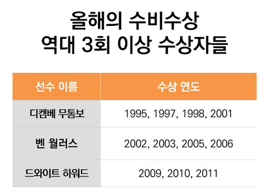 [▲ 디켐보 무톰보도, 빅 벤도 해내지 못했던 올해의 수비수 부문 3연패를 역사상 처음으로 해낸 선수가 드와이트 하워드였다.]