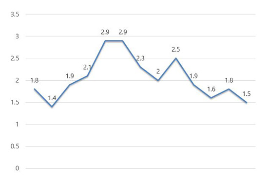 [▲ 데뷔 후 하워드의 시즌별 블록슛 수치 변화. 한 때 경기당 3.0개에 근접했던 블록슛 수치가 이제는 반토막이 나버렸다.]