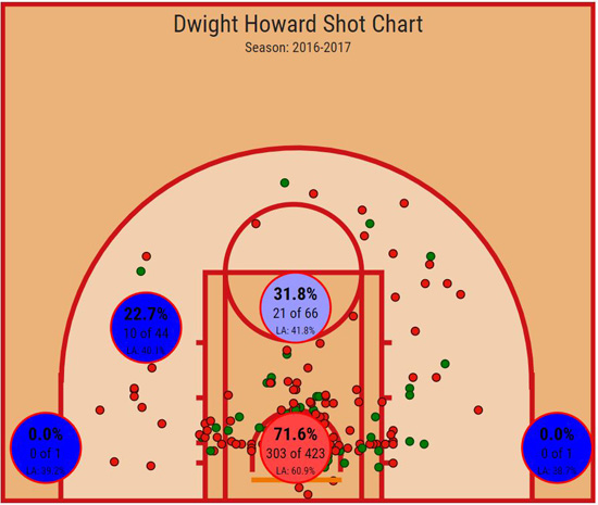 수비력이 하락한 상태에서 공격력은 정체된 31살의 센터. 이것이 바로 2017년 드와이트 하워드의 민낯이었다.