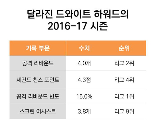 하지만 희망도 충분히 가져볼 수 있다. 2016-17 시즌 중 하워드가 만들어낸 의미 있는 변화 때문이다.