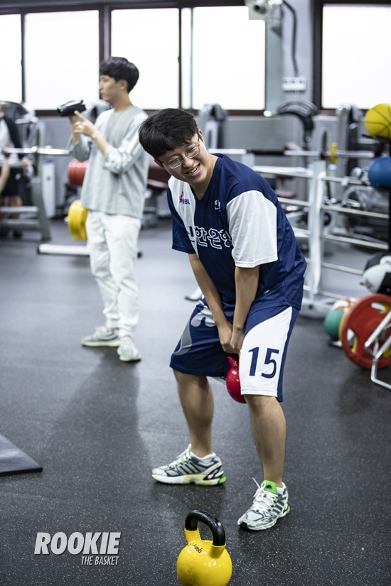 그토록 해보고 싶었던 바벨을 활용한 벤치 프레스도 체험했다. 지난 KB 전지훈련 때 실패했던 운동이다. 당연히 혼자서는 할 수 없어 트레이너의 도움을 받았다. 마치고 나니 어깨가 아주 조금 넓어진 것 같은 착각이 들었다. 또 상·하체 모두 자극을 주는 케틀 벨 스윙도 해볼 수 있었다.