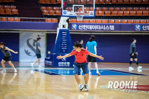 이후 정선민 코치가 멀리서 불렀다. 김연희의 훈련 파트너가 되어달라는 부탁이었다. 현재 신한은행은 센터 유망주 김연희에게 많은 투자를 하고 있다. 정 코치는 마치 일대일 과외처럼 매일 김연희를 지도하고 있다. 정선민 코치의 지도에 따라 다양한 움직임을 했다. 주로 김연희의 수비에 대한 내용이었다. 김연희는 헬프 수비를 갔다가 제자리로 돌아오기, 상대 돌파를 막아 세우기 등을 연습했다. 또 코트에서 자리를 잡는 훈련도 했다.