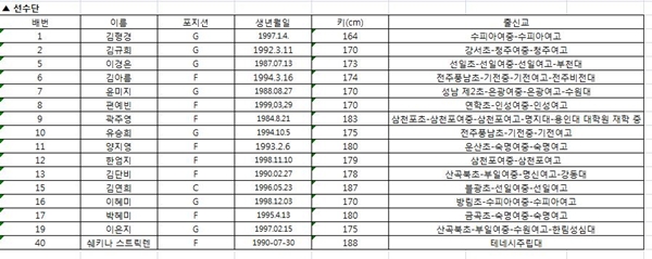 외국인선수로 쉐키나 스트릭렌을 선발했다. 센터가 아니다. 결국 우리는 공수에서 상대보다 조금 더 빨라야 한다. 조직력도 상대보다 앞서야 이길 수 있다. 골밑에서는 김연희와 박혜미, 한엄지가 활약해줘야 한다. 외곽에서는 양지영이 조금 더 성장했으면 한다. 지난 시즌을 통해 식스맨으로 거듭난 김아름은 이번 시즌 더 많은 역할을 맡게 될 것이다.