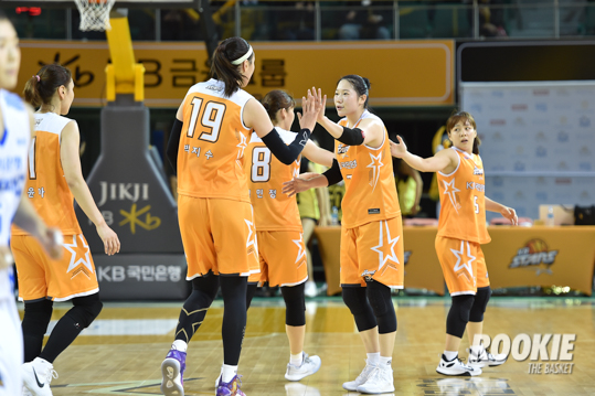 [루키=청주, 이현수 기자] 29일 청주체육관에서 ’우리은행 2018-2019 여자 프로농구' 청주 KB스타즈와 아산 우리은행의 경기가 열렸다. KB스타즈 주장 강아정이 선수들을 격려하고 있다.