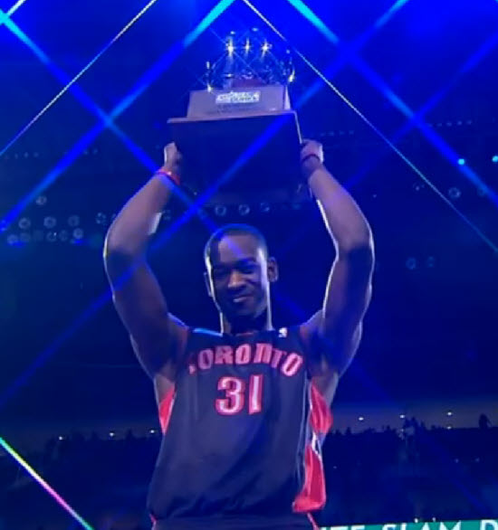 ⓒ Youtube.com 캡처 = 2013 덩크대회 챔피언 테렌스 로스가 트로피를 높이 치켜들고 있다.