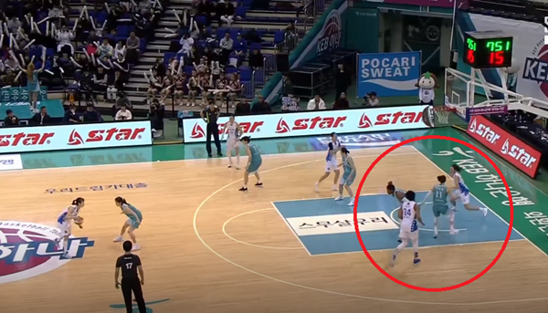 이유가 있다. 위 장면에서 임영희의 마크맨인 강이슬은 토마스의 스크린에 완전히 걸려서 사실상 1미터 뒤에서 그를 쫓아오는 중이고, 3점슛 라인 부근은 완전히 비어 있었다.