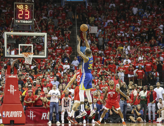 덕분에 ‘황제’도 소환했다. 듀란트는 지난 휴스턴과 3차전에서 46점을 올리며 플레이오프 첫 원정 4경기에서 합계 167점을 올렸는데, 이는 1989-90시즌 마이클 조던과 함께 최다 득점 타이 기록이다. 원정에서 괴력을 발휘하는 듀란트의 활약에 힘입어 골든스테이트는 현재 서부컨퍼런스에서 원정 3승을 기록 중인 유일한 팀으로 남아있다.