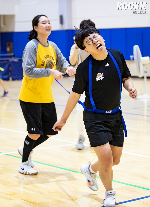 그러나 안덕수 KB 감독의 생각은 달랐다. “이곳에 온 순간, 우리는 원 팀(one team)”이라며 전술 훈련이 아닌 레이업이나 점프슛, 자유투 등 기초적인 훈련은 함께 참여하라고 했다. 감독의 지시를 거스를 수는 없는 법. 훈련이 시작됐고, 일렬로 줄을 서서 차례가 다가오기를 기다리는데, 스프린트 훈련을 할 때보다 더 많은 식은땀이 흐른다.