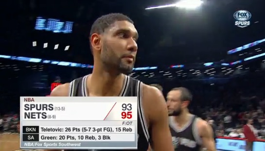 하지만 연장전에서 스퍼스 선수들은 체력적 한계를 드러냈다. 시도했던 거의 모든 슛이 불발되며 고작 5점에 그친 것. 또, 마지막 순간 지노빌리가 시도한 회심의 3점슛이 안 들어가며 8연승 행진이 끊기고 말았다.