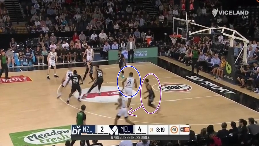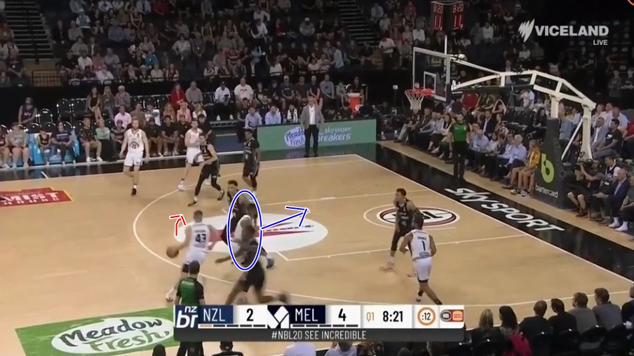 물론 그와 별개로 위에 소개한 2가지 장면에서 가장 큰 역할을 하는 것은 핸드오프 패스와 스크린 이후 골밑으로 민첩하게 달려가는 숀 롱의 스피드다. 숀 롱이 스크린 이후 몸을 돌리는 동작이 둔하거나 골밑으로 달려가는 속도가 느린 선수였다면 멜버른의 공격 자체가 제대로 전개되지 못하거나 수비에 큰 위협을 주지 못했을 것이다. 첫 장면의 리스크린 동작에서도 드러났듯 롱은 드리블러의 의도와 수비의 움직임을 읽고 플레이하는 능력도 좋다. 농구 IQ가 상당히 뛰어나다고 볼 수 있다.