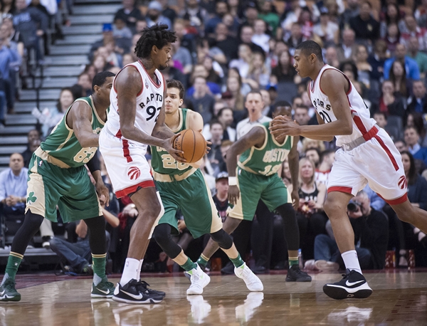 쿠즈마가 데이비스에게서 핸드 오프 패스를 건네받았다. 앞선 크로스 스크린 상황에서 스위치로 쿠즈마의 마크맨이 됐었던 메이슨 플럼리는 르브론 쪽을 신경쓰다가 쿠즈마의 빠른 움직임에 미처 대처하지 못했고, 데이비스를 마크하던 볼 볼에게 다시 스위치 수비를 지시한다.