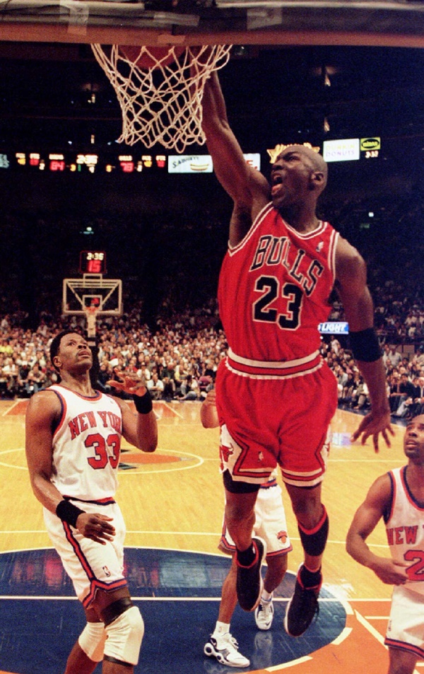 그러나 문제는 하필 뉴욕이 우승권에 근접한 시기가 1980년대 후반이라는 점이다. 이 시기가 왜 문제가 되냐고? 정답은 간단하다. 유잉보다 1년 앞선 1984년 드래프트에서 1라운드 3순위로 노스캐롤라이나 대학 출신의 마이클 조던이 시카고 불스의 유니폼을 입었기 때문이다.