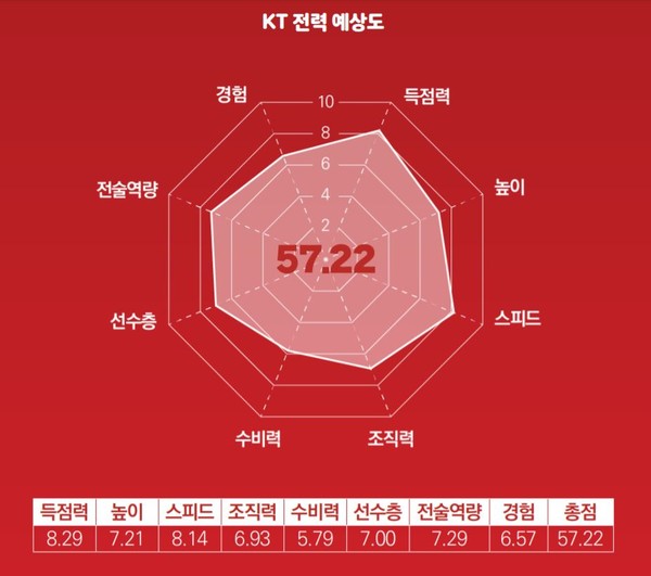 수비력 역시 KT의 발목을 잡고 있는 부분이다. 지난 시즌 평균 81.4득점으로 리그 3위에 오르며 화끈한 공격 농구를 펼친 KT지만 평균 83.7실점으로 2년 연속 리그 최하위에 머무르며 수비 약점을 드러냈다.