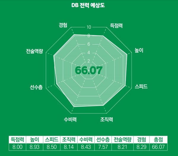 KBL에서 외국선수 득점력은 팀 전력에 중요한 부분이다. 하지만 DB는 공격력이 좋은 국내 선수를 기반으로 국내외 선수간의 좋은 득점 균형을 보여줬다. 지난 시즌 국내 선수 평균 득점 10점 이상을 기록한 선수 중 DB는 두경민(14.4점), 허웅(13.7점), 김종규(13.3점)가 이름을 올렸다. 두경민의 경우 스피드를 이용한 돌파와 정확한 외곽슛을 보여줬고 허웅은 폭발력있는 득점력을 자랑했다. 김종규도 골밑뿐 아니라 외곽에서도 정확한 점프슛을 보여주며 상대 수비를 흔들었다. 상대적으로 DB 외국선수의 득점력이 저조하더라도 국내 선수들의 득점력을 바탕으로 DB는 지난 시즌 팀 평균 득점 83.5점으로 전체 1위를 기록했다.