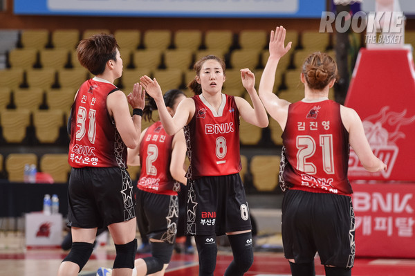 부산 BNK 썸은 지난 14일 부산 스포원파크 BNK센터에서 열린 KB국민은행 Liiv M 2020~2021 여자프로농구 청주 KB스타즈와 홈 개막전에서 82-79로 이겼다. 시즌 첫 승.