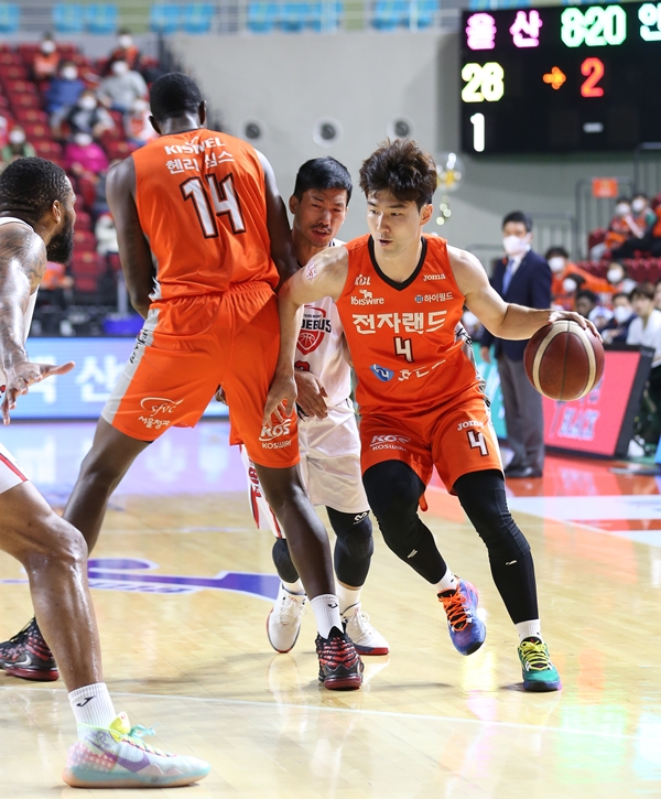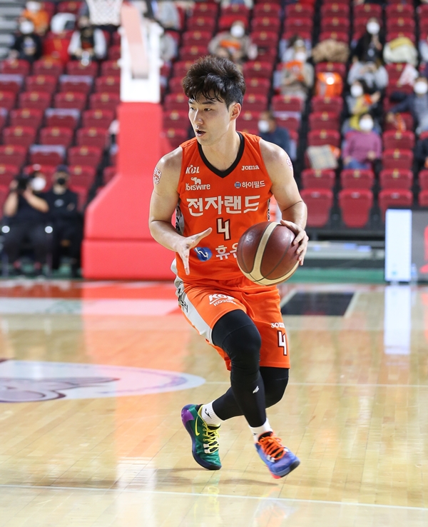 화려한 어시스트를 직접 뿌리는 장면은 그리 많지 않지만, 3점슛 라인 앞에서 수비를 몰고 다니며 강력한 스페이싱 효과를 창출한다. 그리고 전자랜드 동료들은 김낙현이 만들어내는 공간을 활용해 보다 수월하게 득점을 생산하는 중이다.