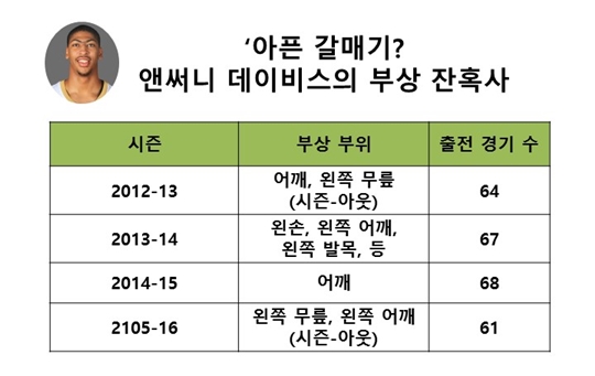 데이비스로서는 건강한 시즌에 대한 간절함이 어느 때보다 큰 상황이다. 이미 데이비스는 잦은 부상으로 커리어에 큰 소해를 보고 있다. 2015년 여름 뉴올리언스와 5년 간 1억 4500만 달러에 달하는 초대형 연장 계약을 맺었지만, 2015-16 시즌을 부상으로 망치면서 계약 규모가 2400만 달러나 감소하는 사건도 있었다. 데뷔 이래 단 한번도 70경기 이상 출전한 시즌이 없어 ‘유리몸’이라는 이미지까지 생기고 있다. 명예 회복을 위해서라도 건강하게 코트에 돌아올 필요가 있는 셈이다.