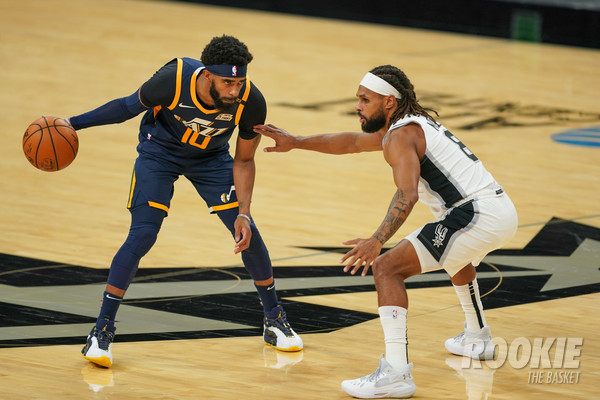 유타 특유의 2대2를 이용한 공격 빈도도 유지됐다. 이번 시즌 유타의 픽앤롤 볼 핸들러 공격 비중은 22.9%로 리그 1위, 롤맨 비중도 6.8%로 7위다. 전반기 팀 페이스가 99.48로 리그 17위에 불과했음에도 하프코트 오펜스에서 2대2를 활용한 유기적인 움직임으로 무수히 많은 3점슛 찬스를 만들어내며 외곽 폭격을 퍼부었다. 특정 선수의 3점슛 감이 좋지 않은 날에도 다른 선수가 번갈아가며 폭발하니 도저히 제어가 불가능했던 셈이다.