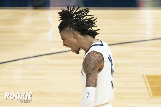 골든스테이트와 플레이-인 토너먼트 8위 결정전에서 35점 6리바운드 6어시스트 4스틸로 맹활약하며 팀 승리를 이끌었던 모란트다. 창단 첫 리그 단독 1위를 차지한 서부 1번 시드 유타와의 1라운드 시리즈에서도 모란트는 맹활약을 펼치고 있다.
