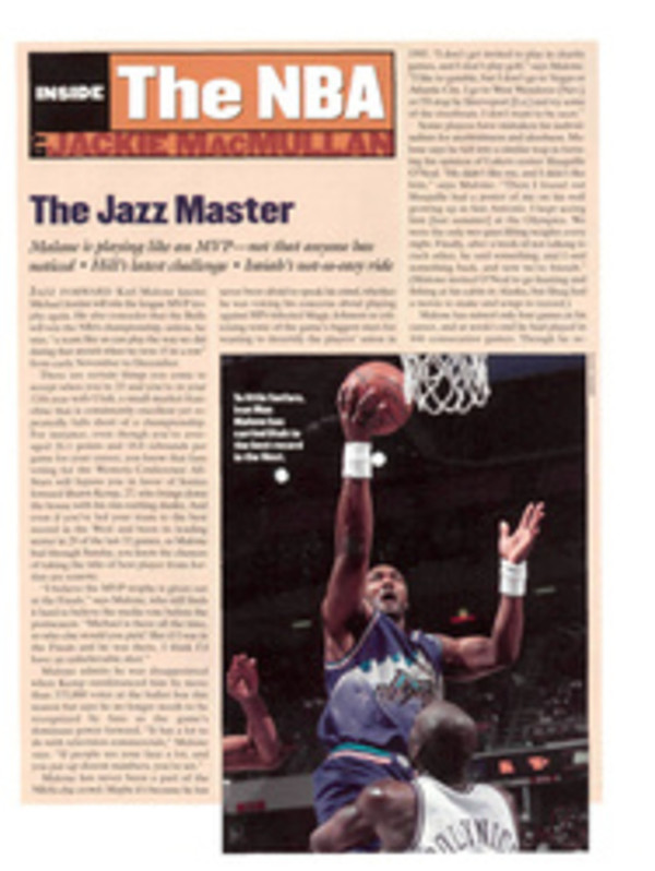 그가 던진 돌의 이름은 <재즈 마스터>라는 제목의 기사로, 맥뮬런 기자는 유타 재즈의 ‘우편배달부’ 칼 말론의 꾸준함을 찬양하며 그가 MVP 투표에서 지금보다 더 정당한 평가를 받아야 한다고 주장했다.