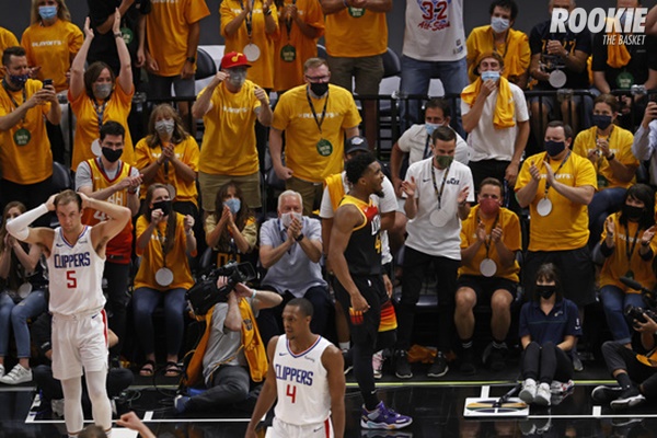 쉽지 않은 경기였다. 올스타 가드 마이크 콘리는 햄스트링 부상으로 결장했다. 유타는 1쿼터 중반 8분 30초 동안 무려 20개의 야투를 연속으로 놓쳤다. 그 대가는 확실했다. 유타는 클리퍼스에 47-60으로 13점 차 뒤진 채 전반을 끝냈다.