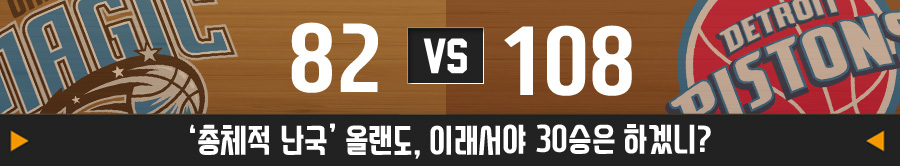 디트로이트 피스톤스가 시즌 첫 승을 신고했다. 뛰어난 빅맨들이 즐비한 올랜도 매직을 상대로 인사이드 우위를 점한 것이 주요 승인이었다. 안드레 드러먼드는 무려 20개의 리바운드를 걷어내는 괴력을 발휘했다.