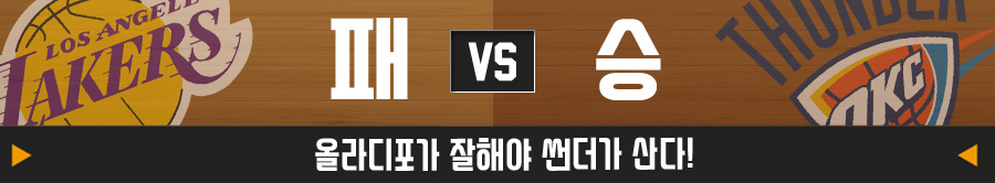 오클라호마시티 썬더의 경기력이 불안하다. 필라델피아 76ers, 피닉스 선즈 등 약체팀들과의 경기에서 비록 이기기는 했지만 과정은 만족스럽지 못했다. 이제 또 다른 약체 LA 레이커스를 만난다. 러셀 웨스트브룩의 짐을 덜어줄 동료들의 분전이 반드시 필요하다.