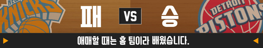 안드레 드러먼드는 최근 두 경기 연속 20리바운드 이상을 따내며 디트로이트 피스톤스의 연승을 이끌었다. 뉴욕 닉스는 리바운드가 취약한 팀이다. 키 큰 빅맨들은 많지만 보드장악력이 떨어진다. 피스톤스가 홈에서 승리할 것으로 보인다.