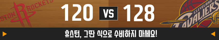 매일 120점씩 넣으면 뭐하나. 130점 주고 패하는데. 휴스턴 로케츠의 수비력은 재앙 그 자체다. 클리블랜드 캐벌리어스는 4쿼터에만 43점을 폭발시키는 등 휴스턴을 농락했다. 휴스턴은 제임스 하든의 필살기인 '자유투 뜯어내기'로 재미를 봤지만, 형편없는 외곽수비 때문에 3점슛을 쾅쾅 얻어맞고 패했다.