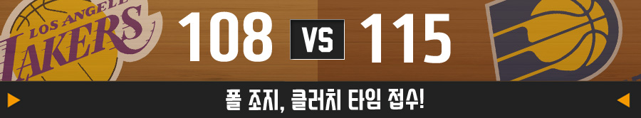 인디애나 페이서스가 LA 레이커스를 잡고 연패에서 벗어났다. 경기 막판 레이커스의 '3 가드 시스템'을 철저히 공략한 페이서스 네이트 맥밀란 감독의 지혜가 돋보였다. 폴 조지는 4쿼터 막판 12점을 홀로 몰아치며 승부처 해결사 노릇을 톡톡히 했다.