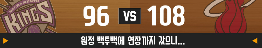 마이애미 히트가 연장 접전 끝에 킹스를 제압했다. 4쿼터까지는 비등했지만, 연장에서 승부의 추가 확 기울어졌다. 히트는 연장에서 17점을 넣으며 킹스를 5점에 묶었다. 새크라멘토는 원정 백투백 경기의 피로를 이기지 못하고 패했다.
