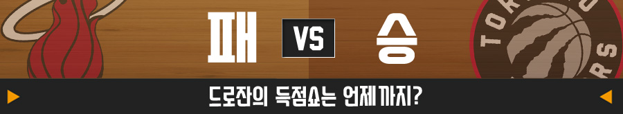 더마 드로잔의 신들린 득점 퍼포먼스가 화제다. 드로잔은 올시즌 평균 36.2점(FG 55.4%)을 올리고 있다. 지속적인 돌파로 마이애미 히트 '수비의 핵' 하산 화이트사이드를 파울 트러블에 빠뜨린다면, 경기는 쉽게 풀릴 수 있다. 카일 라우리의 외곽 지원사격도 기대된다.
