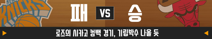 뉴욕 닉스의 수비 불안이 심각하다. 개막 이후 네 경기에서 최소 102점 이상을 내줬다. 117점 이상 실점한 경우도 두 차례나 된다. 반면, 시카고는 공수 양면에서 모두 상당히 안정적인 경기력을 자랑하고 있다. 데릭 로즈, 조아킴 노아의 시카고 방문도 많은 기대를 모으고 있다.
