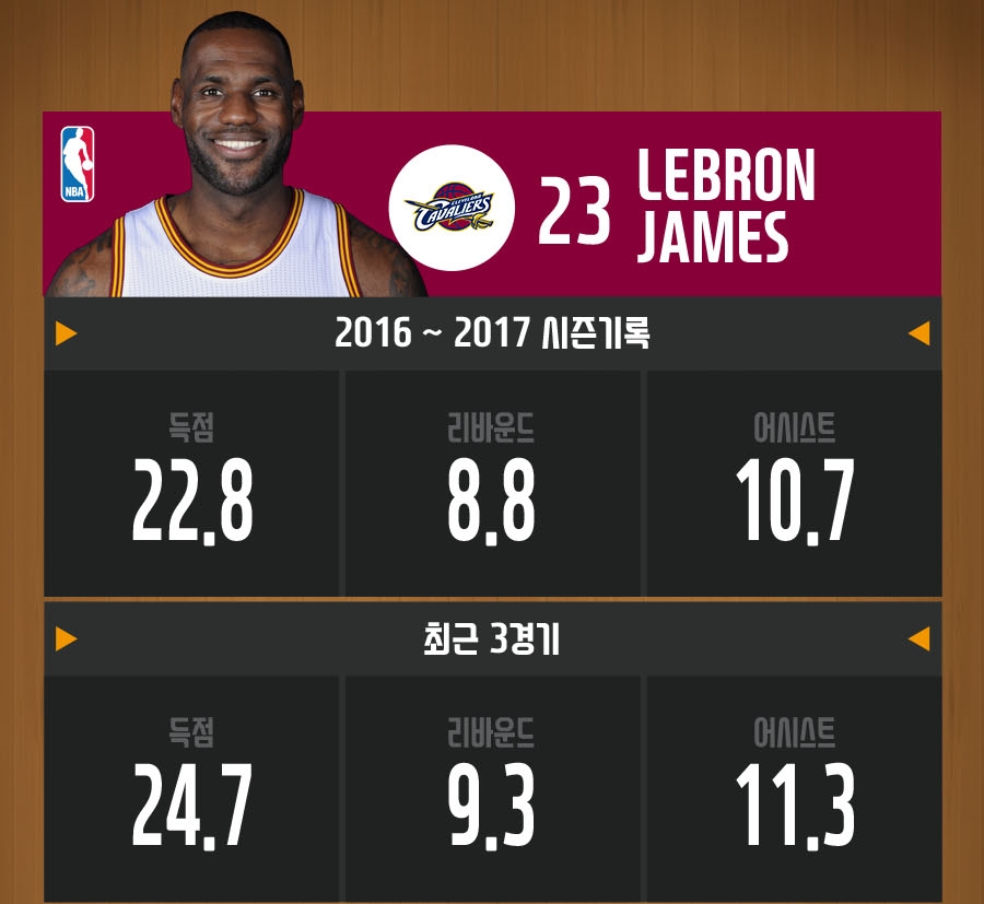 [루키] 이민재 기자 = 2016-17시즌 개막 둘째 주 '이주의 선수'로 뽑힌 선수는 르브론 제임스(클리블랜드 캐벌리어스)와 조지 힐(유타 재즈)이었다.