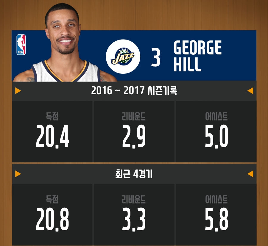힐은 이번 여름 인디애나 페이서스를 떠나 유타에 안착했다. 그는 허약한 유타 포인트가드진의 공백을 메우며 공수 양면에서 펄펄 날고 있다. 시즌 초반 부상으로 결장한 고든 헤이워드의 빈자리도 톡톡히 메웠다. 그 결과 힐은 팀의 주축으로 단숨에 자리 잡았다. 현재 힐이 20점 이상을 넘길 때 유타는 4승 0패 행진을 달리고 있다. 그의 존재감이 유타에서 얼마나 큰지 알 수 있는 대목이다.