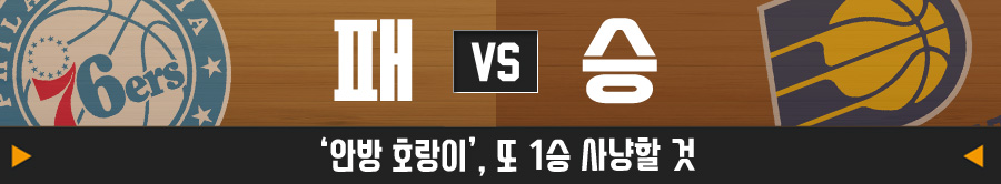 인디애나 페이서스는 홈과 원정의 경기력 편차가 심하다. 원정에서의 네 경기는 모두 패한 반면, 홈에서의 세 경기는 모두 승리했다. 이번 경기는 홈에서 열리고, 마침 상대도 리그 최하위 필라델피아 76ers다. 인디애나의 우세가 예상된다.