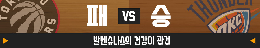 가장 예측이 어려운 경기다. 오클라호마시티 썬더의 기세가 워낙 좋지만, 전력만 놓고 본다면 토론토가 우세하기 때문. 그런데 한 가지 변수가 있다. 랩터스의 센터 요나스 발렌슈나스의 무릎이 좋지 않다. 만약 발렌슈나스가 결장하게 된다면 토론토는 큰 타격을 입을 것이다.