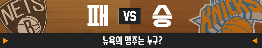 한 지붕 두 가족, 뉴욕 닉스와 브루클린 네츠가 맞붙는다. 일명 '뉴욕 더비'. 두 팀 모두 뉴욕을 연고지로 하고 있기 때문에, 홈과 원정의 구분은 딱히 의미가 없다. 다만 브루클린은 이틀 연속 경기이기 때문에 분명 불리한 면이 있다. 또, 제레미 린과 그레비스 바스케즈의 부상 공백도 아쉽다.