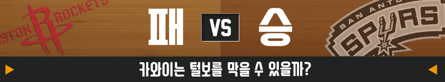 샌안토니오 스퍼스는 올시즌 두 차례 불의의 일격을 당했다. 유타 재즈와 LA 클리퍼스에게 패한 것. 골밑이 매우 강한 두 팀과 달리, 휴스턴은 인사이드진이 허약하다. 제임스 하든으로부터 파생되는 공격만 잘 막으면 된다. 강력한 수비력을 지닌 카와이 레너드의 존재가 이렇게 든든할 수가 없다. 또, 토니 파커와 대니 그린의 복귀설도 솔솔 피어나고 있는데, 이 역시 스퍼스에게는 호재다.