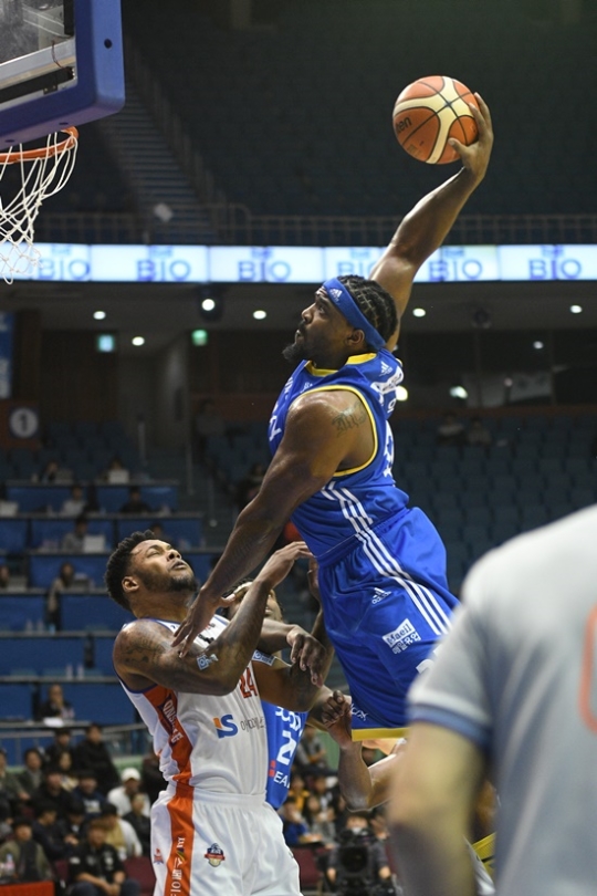 13일 원주 동부전은 달랐다. 동부에는 크레익 만큼 단신 빅맨의 위용을 자랑하는 웬델 맥키네스가 있었다. 맥키네스는 192cm 112kg의 피지컬을 과시하고 있다. 그의 부친이 미식축구 선수였다는 점을 감안하면 크레익 못지않은 DNA가 그의 몸속에 자리잡고 있다.