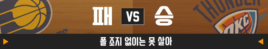 폴 조지가 없는 인디애나 페이서스는 팥 없는 찐빵이다. 지난 피닉스전에서 졸전 끝에 96-116으로 패한 것이 그 증거다. 문제는 조지(발목)뿐만 아니라 CJ 마일스(무릎)와 케빈 세라핀(발목)까지 결장하게 됐다는 것. 오클라호마시티는 4연패 뒤 2연승을 구가하며 분위기 반전에 성공했다. 러셀 웨스트브룩의 변함없는 활약, 최근 좋아진 빅터 올라디포의 경기력 등이 이어진다면 썬더의 완승이 예상된다.