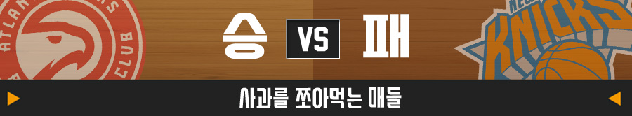 애틀랜타 호크스는 탄탄한 전력을 바탕으로 동부 컨퍼런스 2위를 달리고 있다. 경기당 평균 +8.5점차로 승리할 만큼 공수 밸런스가 좋다. 최근 샬럿 호네츠에게 패하기 전까지 6연승 행진을 하기도 했다. 반면 뉴욕 닉스 선수들은 경기별 기복이 매우 심하다. 조아킴 노아 역시 "내 경기력의 부침이 심하다"고 인정할 정도. 지난 워싱턴 위저즈전에서는 존 월을 앞세운 패싱 게임을 제어하지 못하고 패했다. 애틀랜타의 유려한 패스워크를 따라가지 못하고 무너질 가능성이 높다.