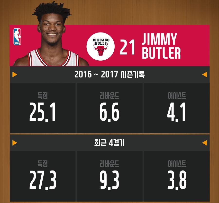 [루키] 유상열 기자 = 시카고 불스의 지미 버틀러(28, 201cm)와 뉴올리언스 펠리컨스의 앤써니 데이비스(24, 208cm)가 이주의 선수에 선정됐다.