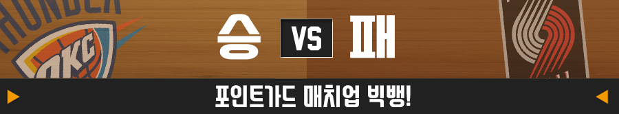 포틀랜드 트레일 블레이저스가 홈팀이기는 하지만, 백투백 경기라는 점에서 체력적 우위는 딱히 점하기 어렵다. 포틀랜드는 13일 LA 클리퍼스와의 원정경기에서 막판까지 접전을 벌이다 패했다. 최근 4연패를 당하는 등 경기력이 좋지 않다. 오클라호마시티 썬더는 최근 8경기에서 7승을 따내는 등 상승세를 타고 있다. 변수는 빅터 올라디포의 출장 여부다. 지난 경기에서 손목을 다친 올라디포는 현재 팀 훈련을 소화하지 못하고 있다. 만약 그가 결장한다면 포틀랜드가 이길 가능성이 높아 보인다. 러셀 웨스트브룩과 데미안 릴라드의 대결 역시 많은 기대를 모으고 있다.